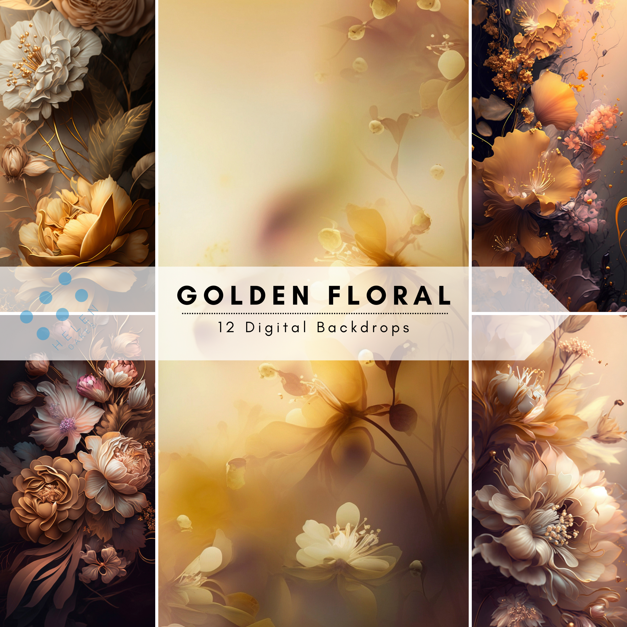 Boost your photography with our 12 Golden Floral Backdrops, perfect for creating a decorated wall backdrop with fineart elegance. These artful digital backgrounds add a sophisticated touch to any shoot, making them ideal for fineart and portrait photography.