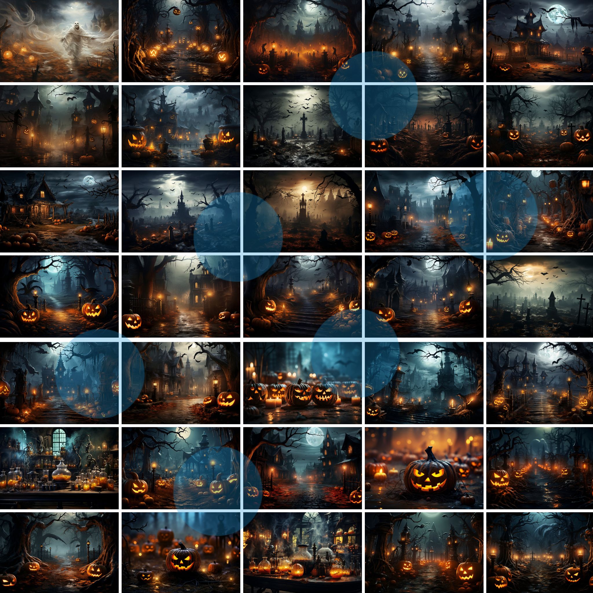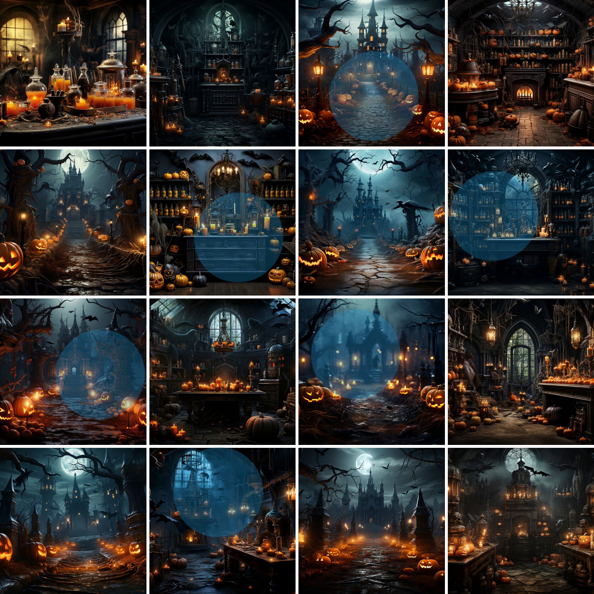Spooky Halloween Backdrop Bundle, Digital Backdrops, Backdrop Overlay, Decorated Backdrops, Photoshop Overlay