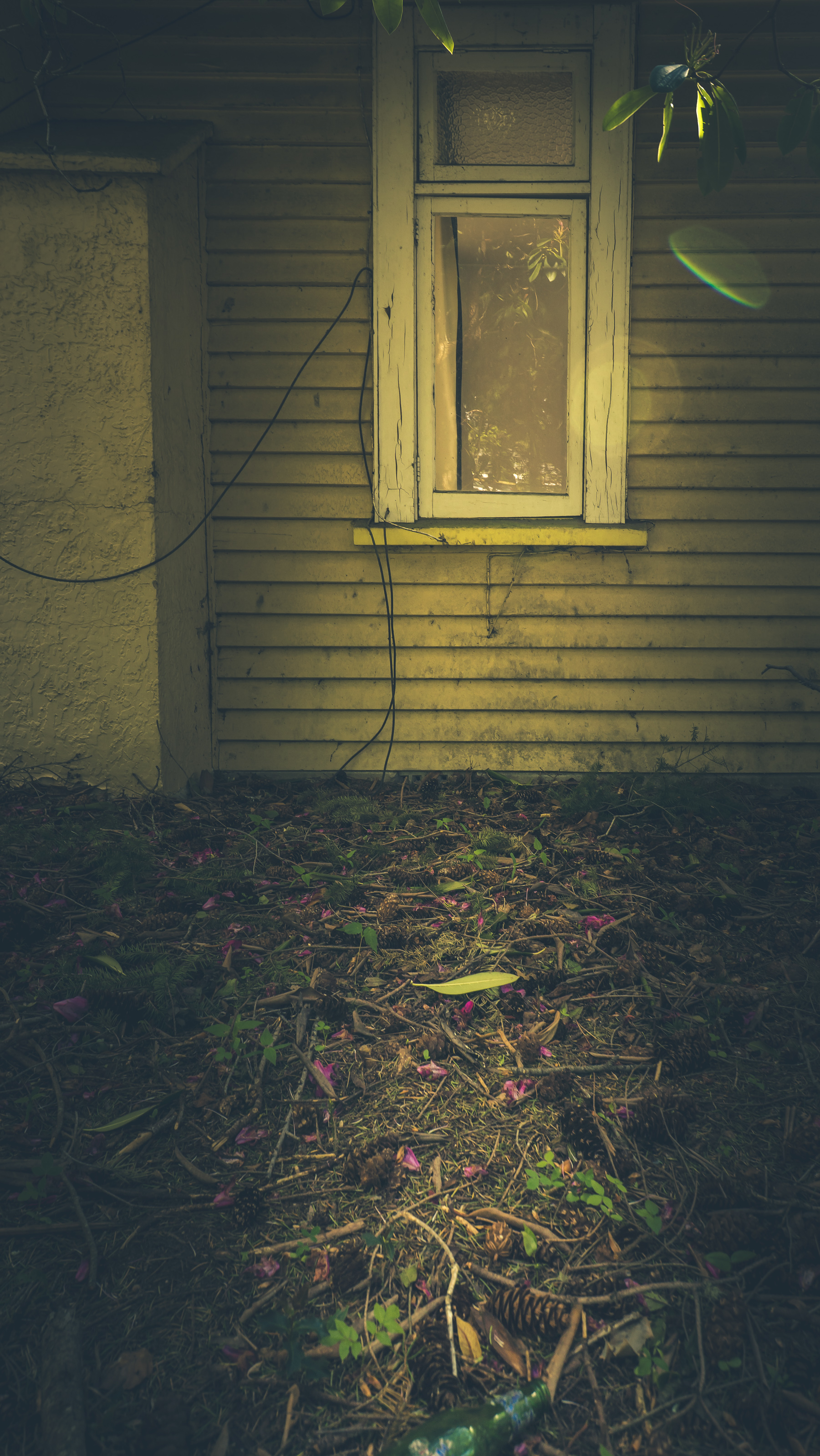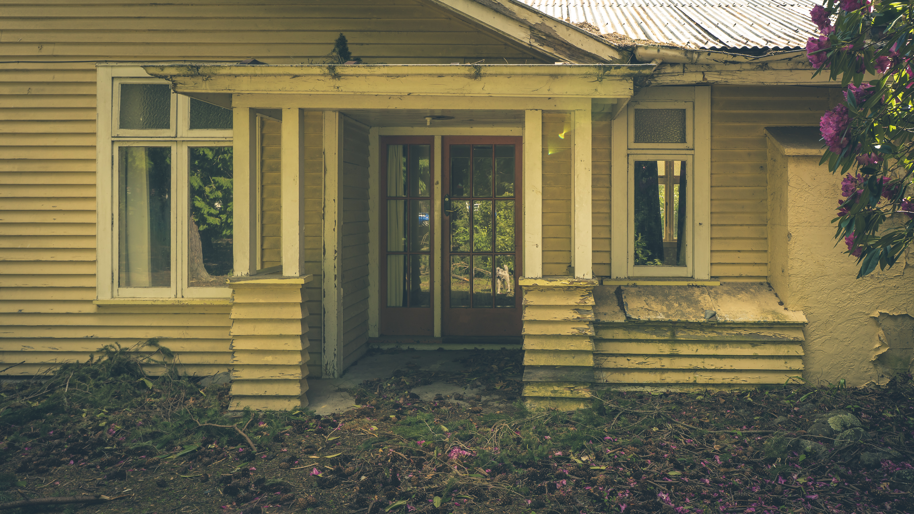 Broken windows, open to the elements.