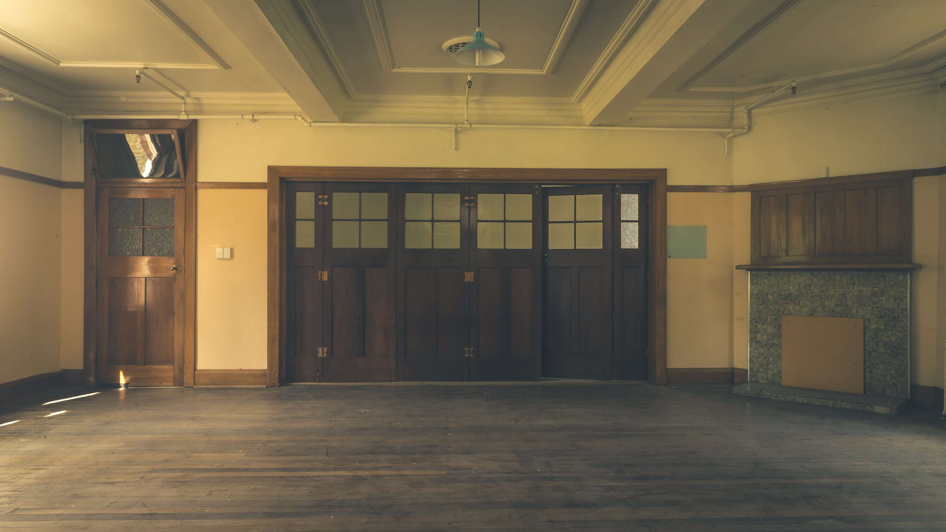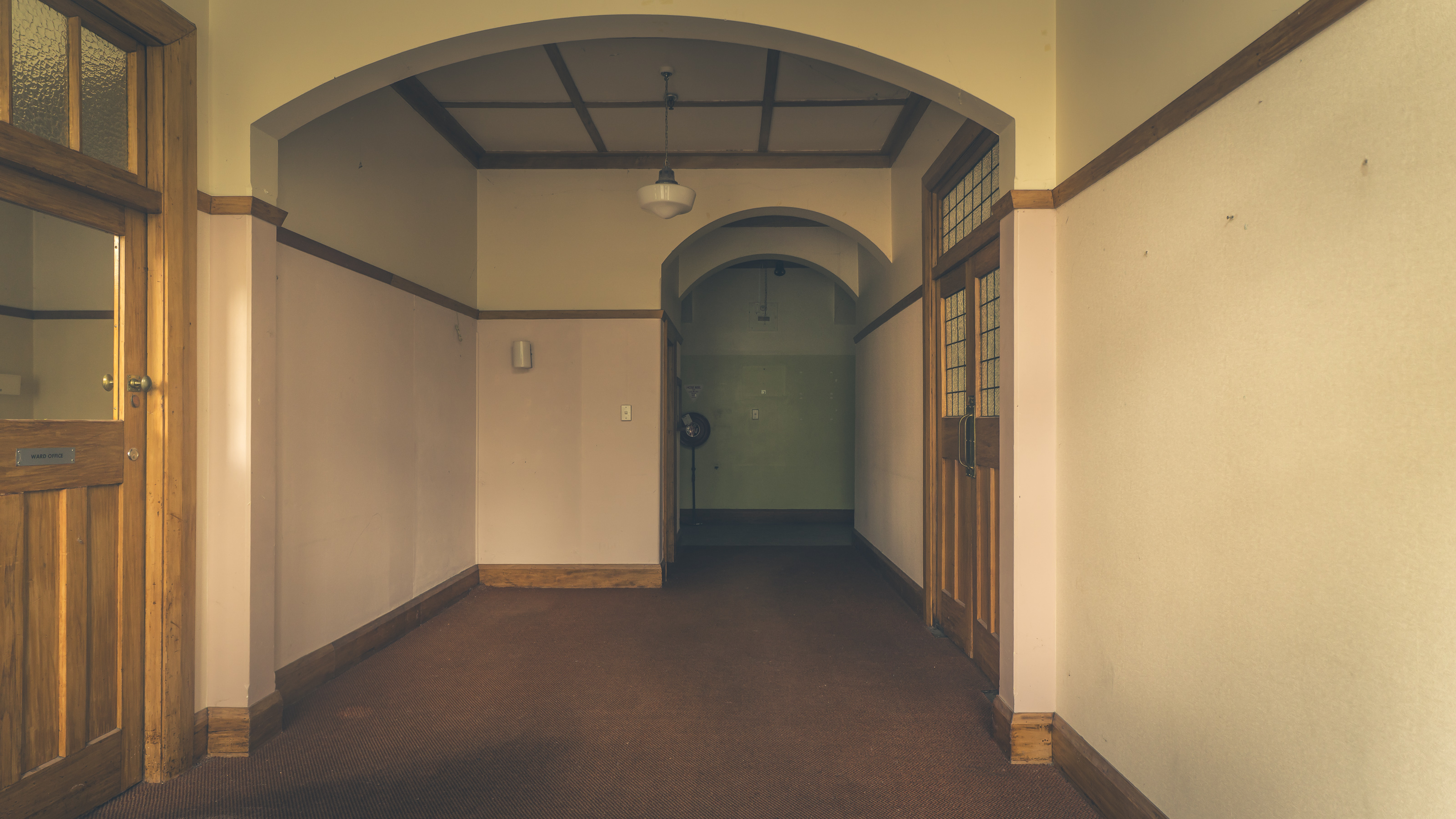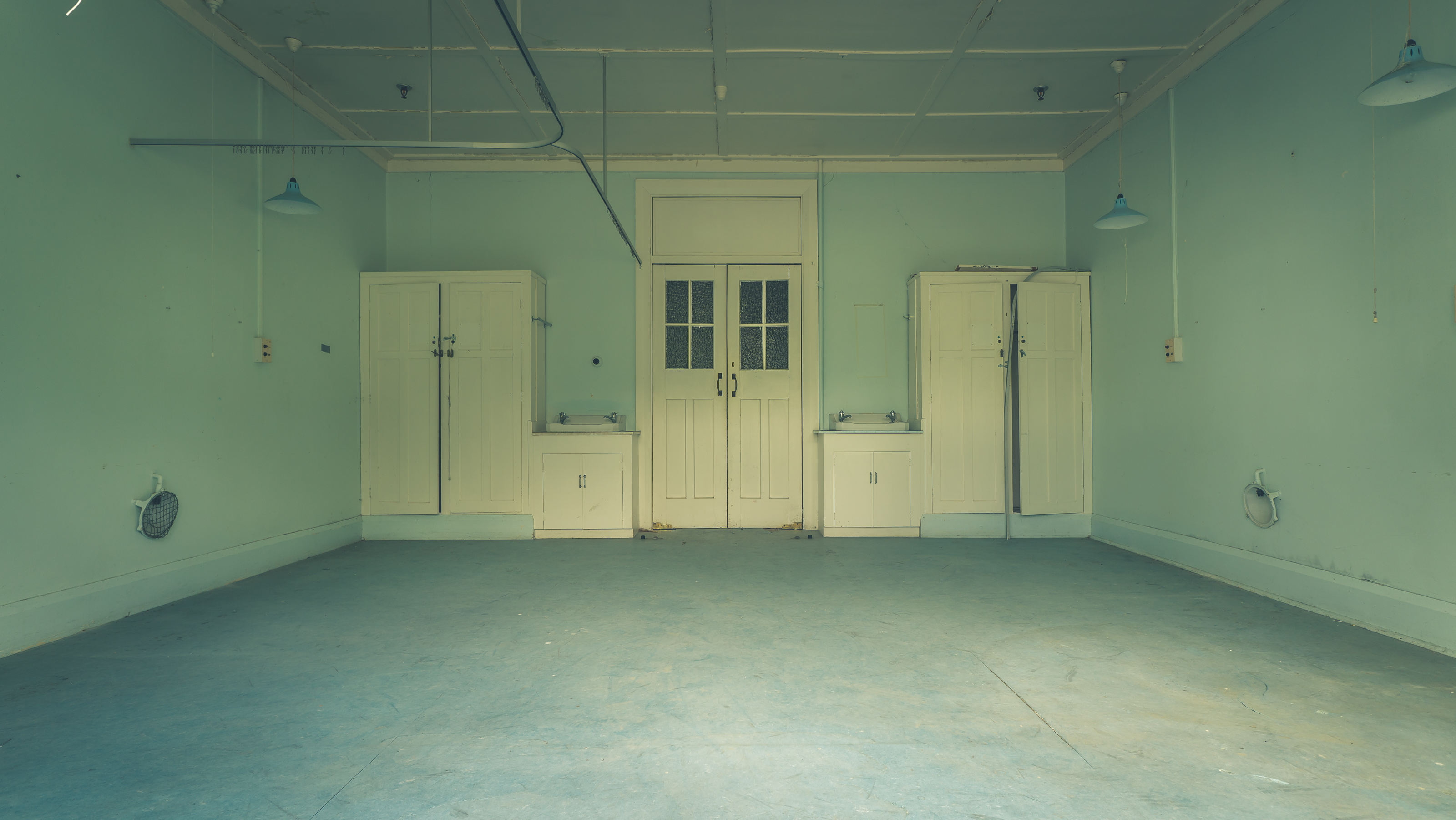 Lounge doors, quiet after years of routines and roll calls.