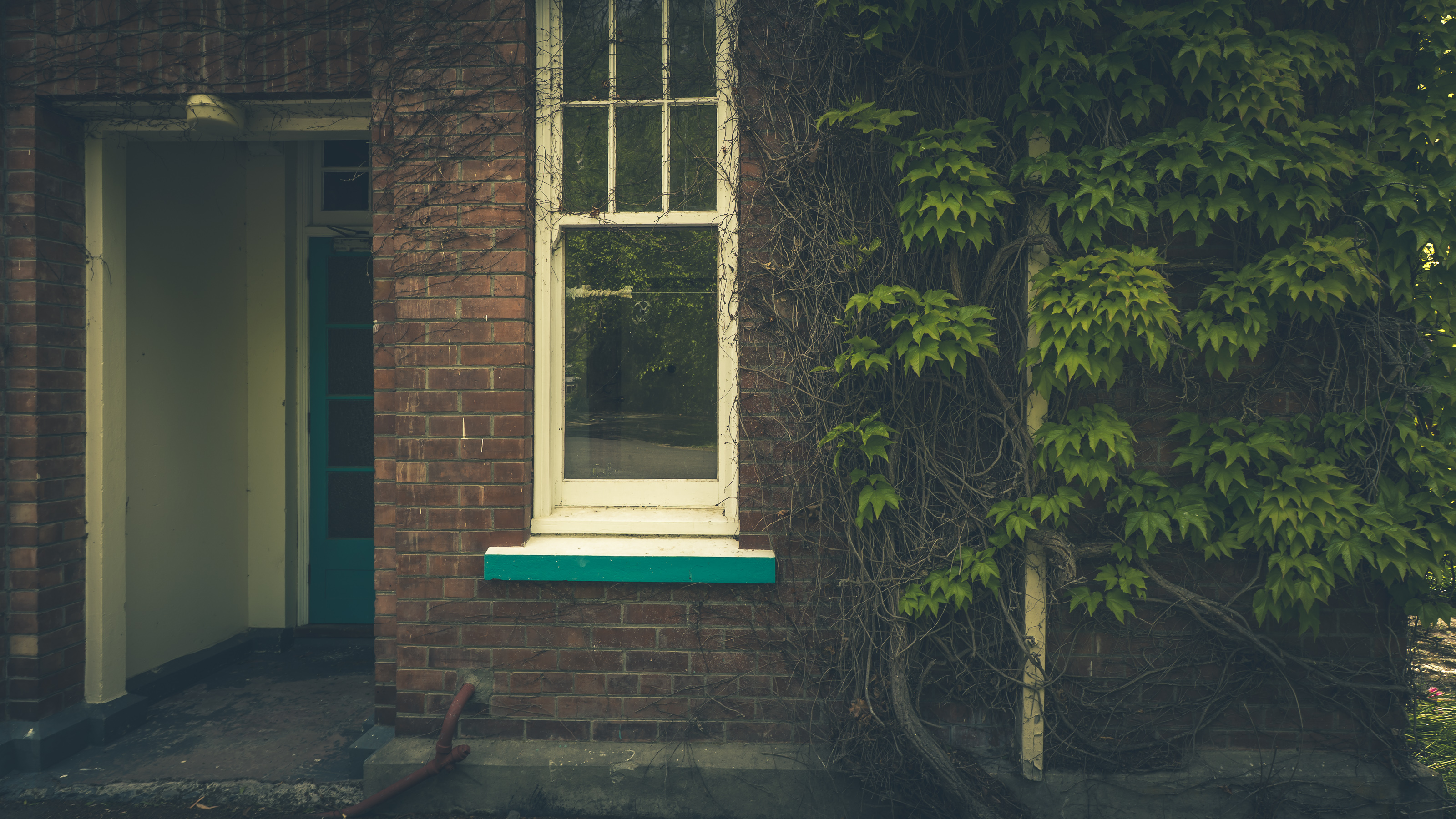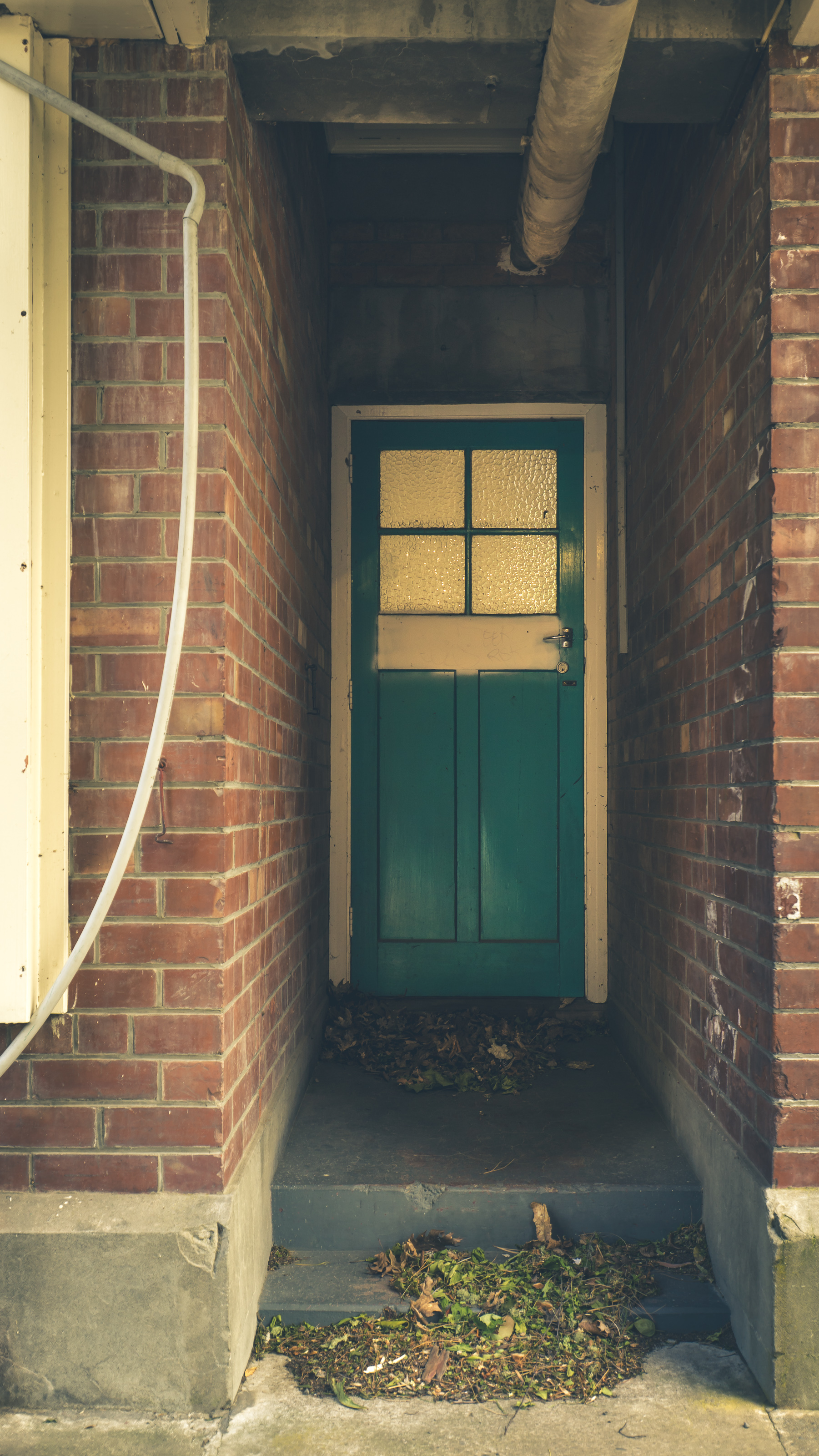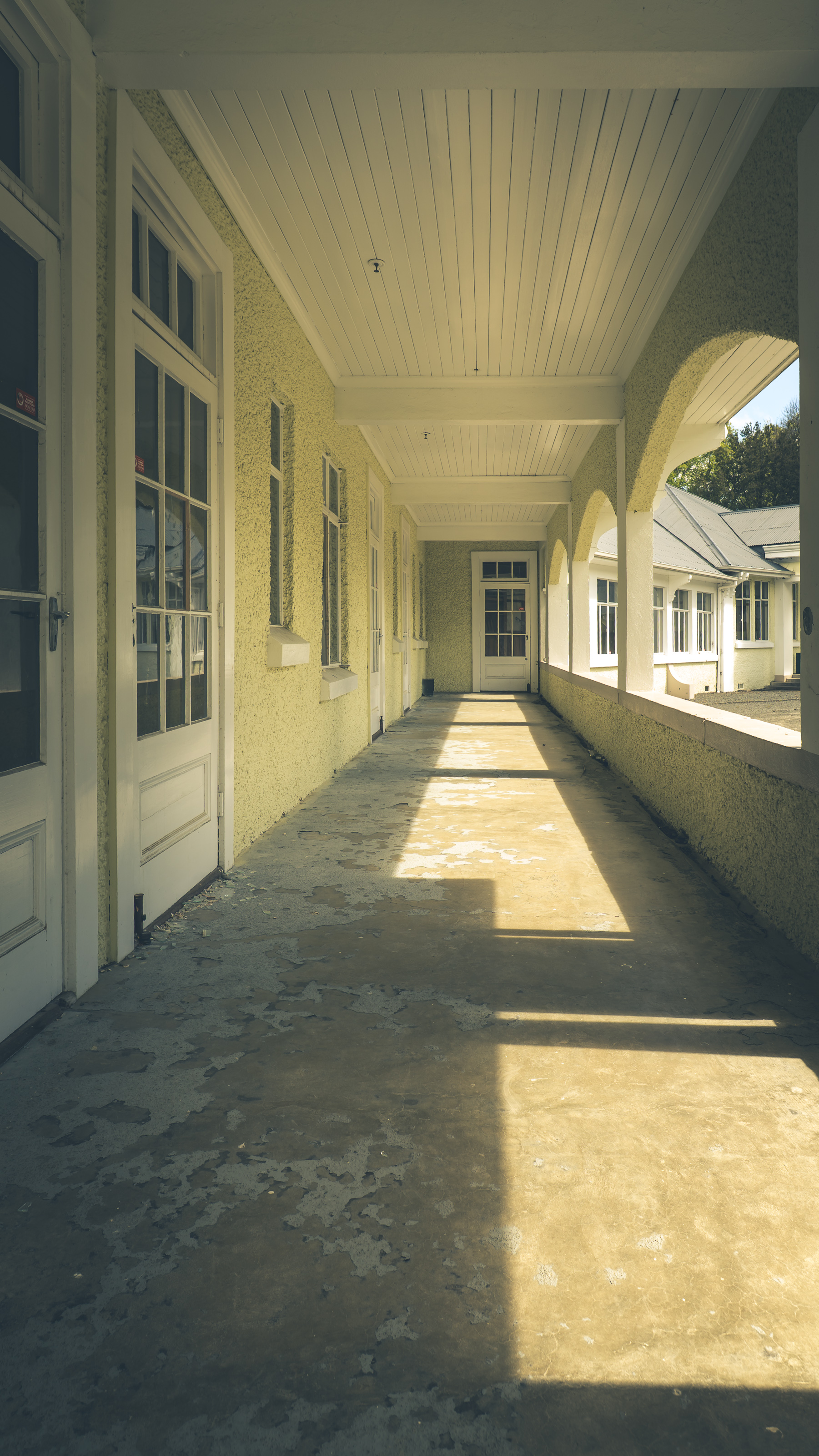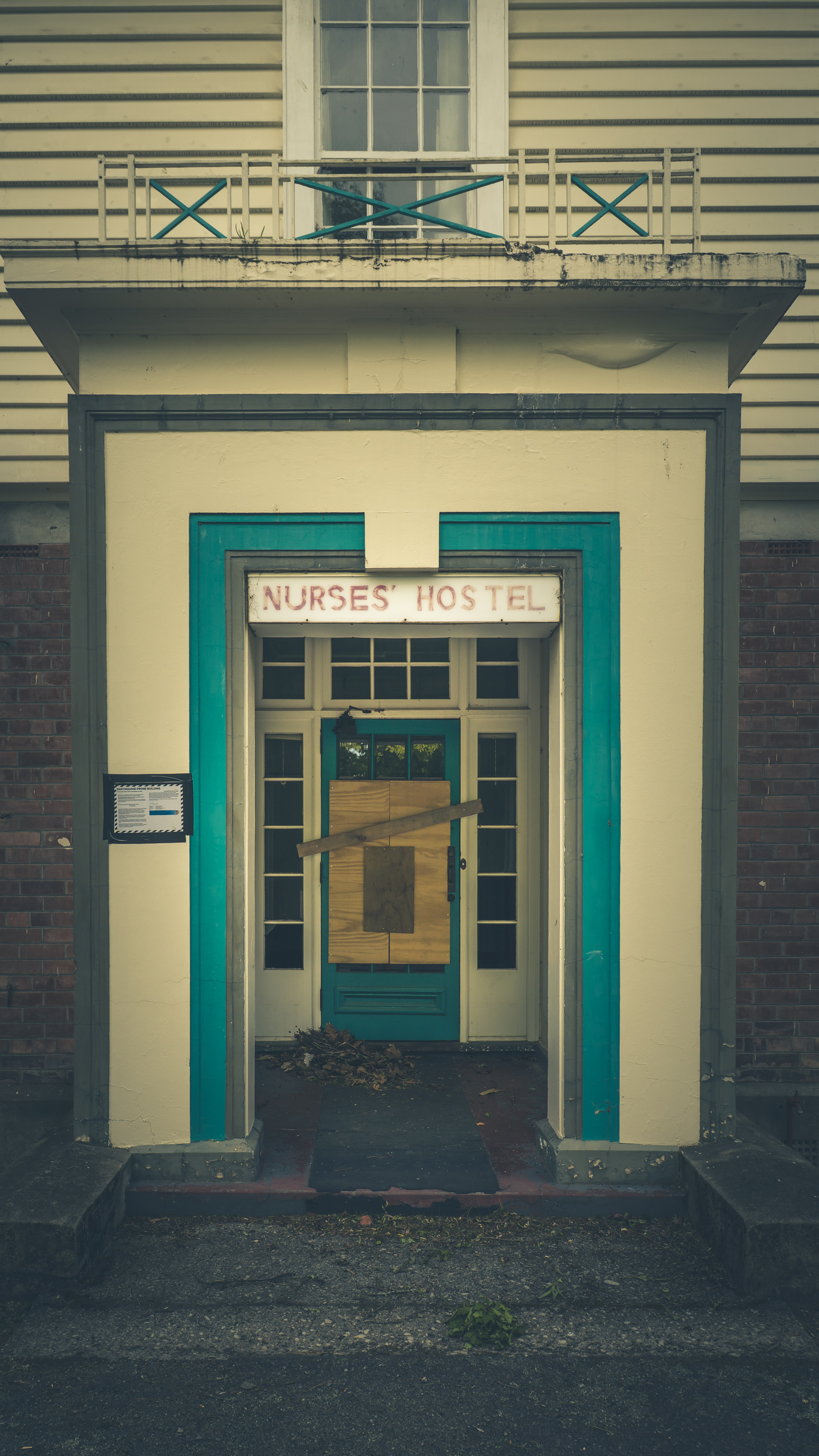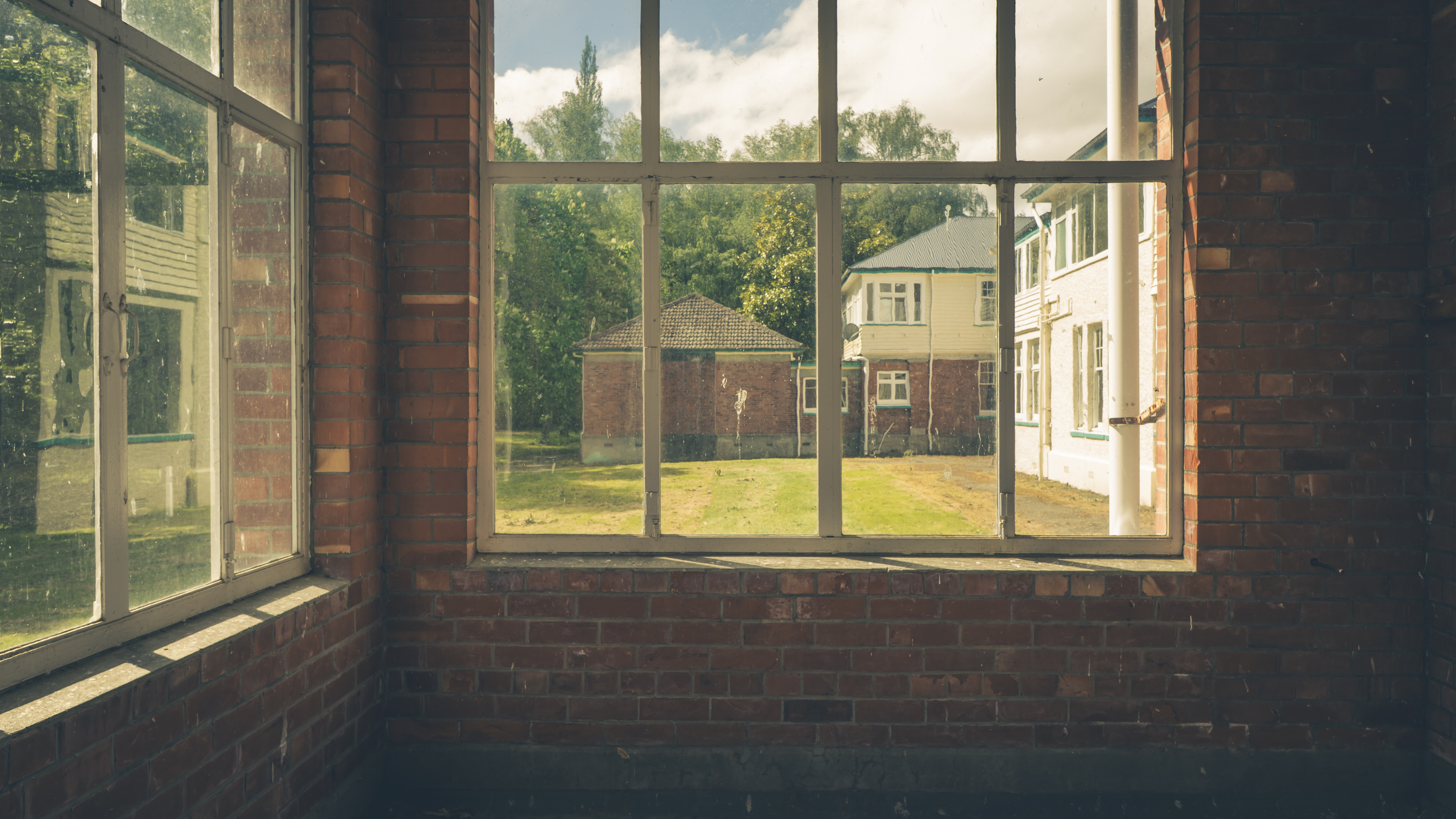 Looking outside the Nurse’s Hostel through brick and glass, life once framed.
