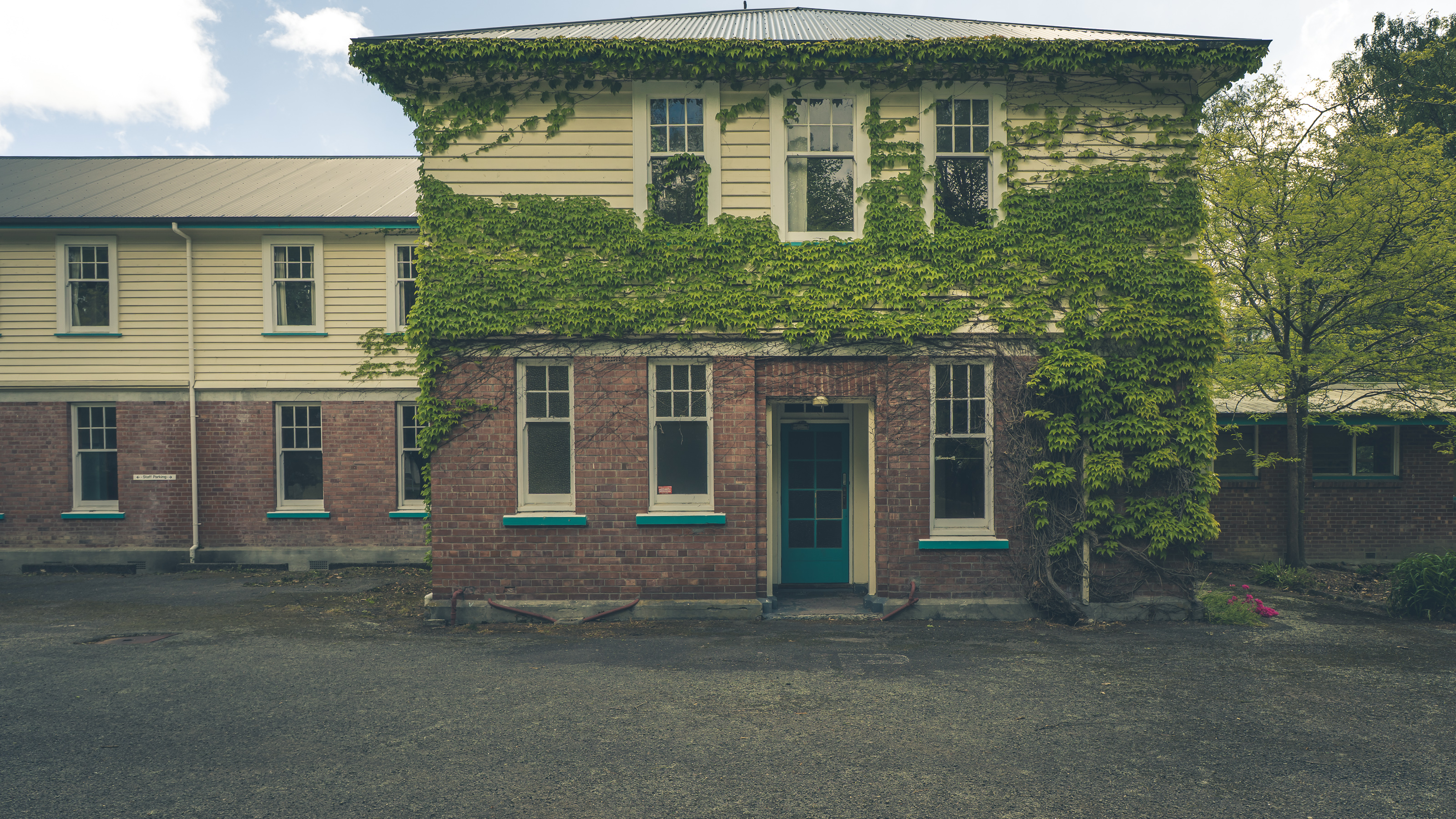 Staff cottage frontage, domestic calm at the edge of the grounds.